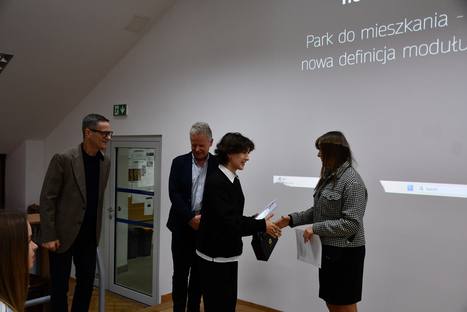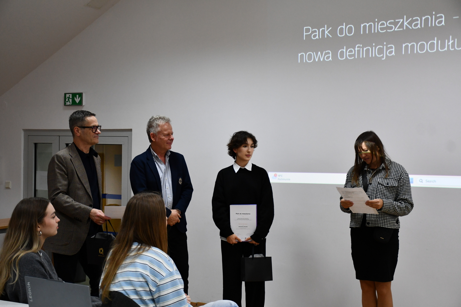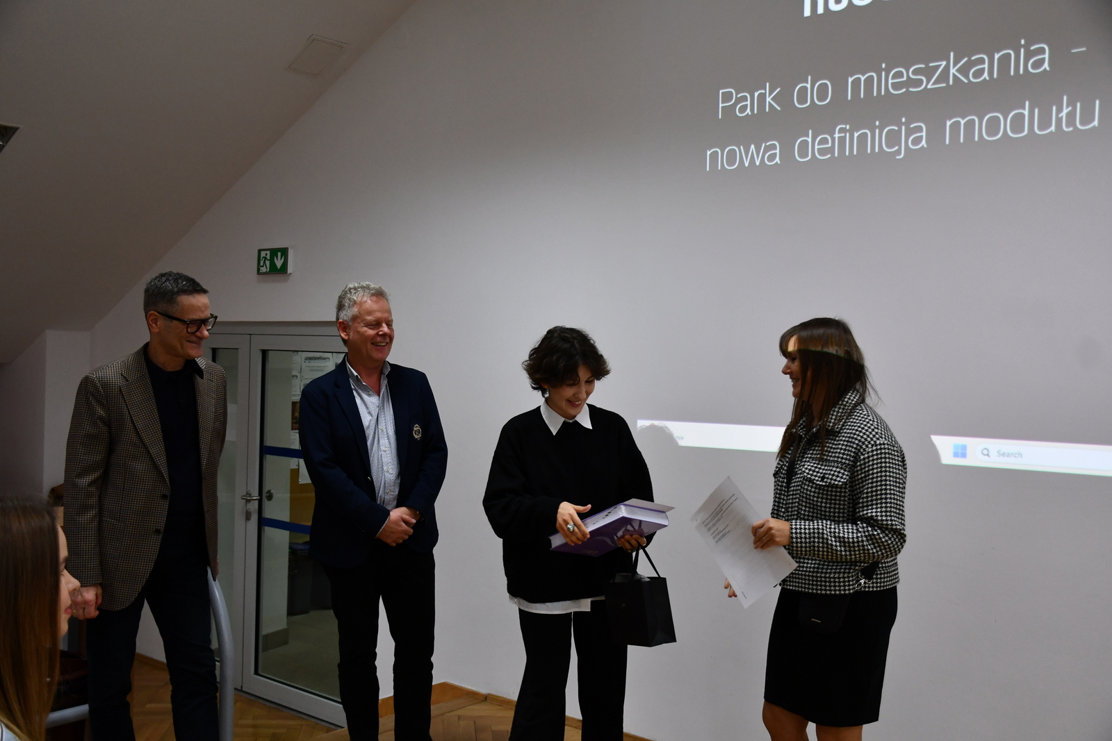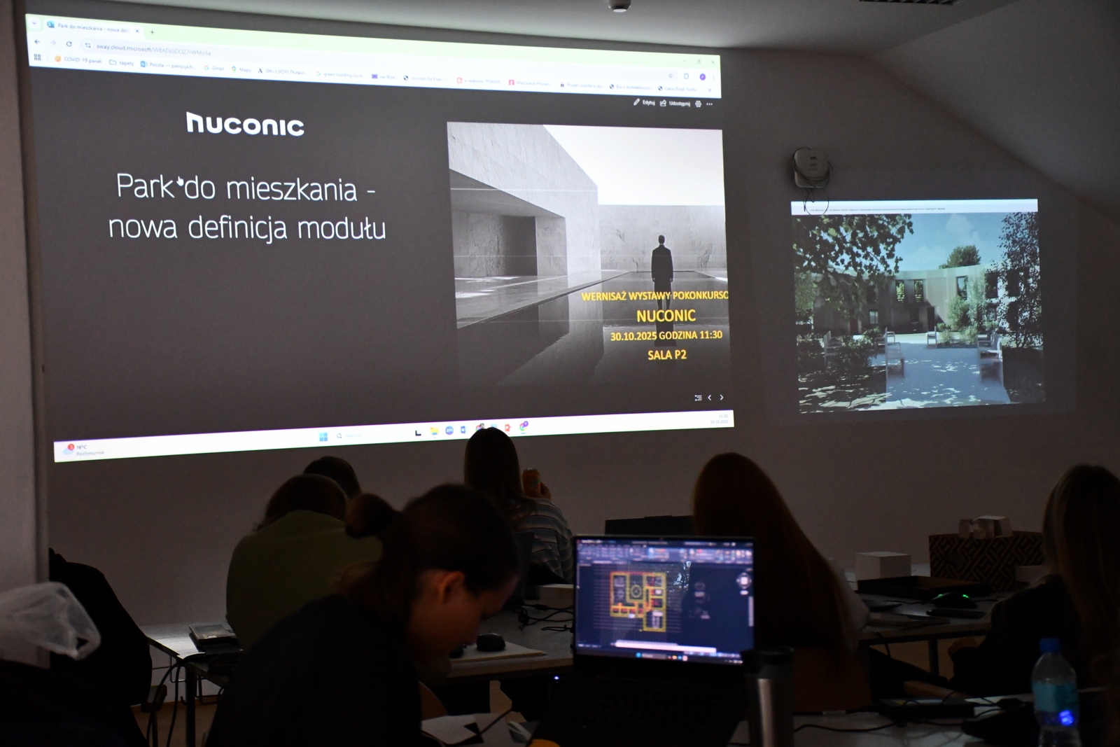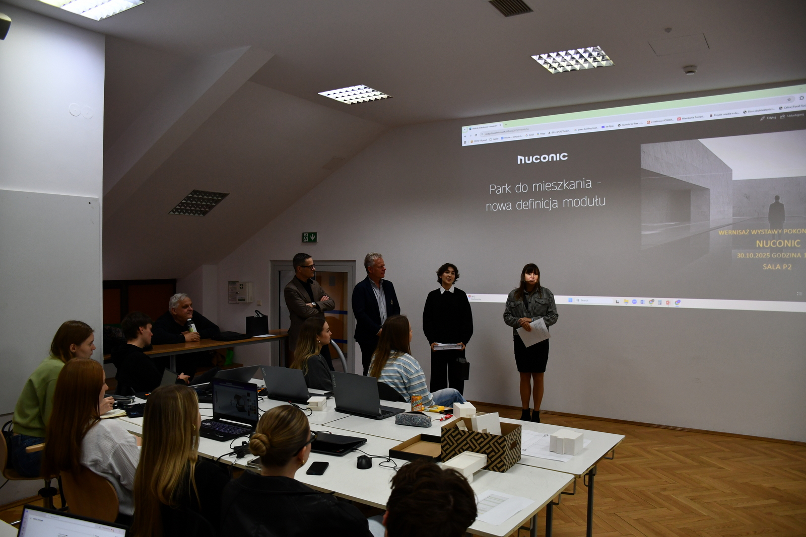 W semestrze letnim studenci kierunku Architektura w języku polskim i języku angielskim mieli okazję wziąć udział w konkursie organizowanym przez Katedrę Kształtowania Środowiska Mieszkaniowego Wydziału Architektury Politechniki Krakowskiej wraz z firmą Nuconic Sp. z o.o. w ramach współpracy z otoczeniem gospodarczym. Celem konkursu było ukazanie praktycznego zastosowania wiedzy teoretycznej poprzez opracowanie projektu zespołowej zabudowy jednorodzinnej z wykorzystaniem technologii modułowej, realizowanego pod hasłem „Park do mieszkania”. Przedstawiciele firmy przekazywali swoją wiedzę podczas wykładów, seminariów i konsultacji pomagając studentom przełożeniu ich architektonicznych wizji na język technologii budownictwa modułowego. Rezultaty tych zmagań można zobaczyć w galerii: